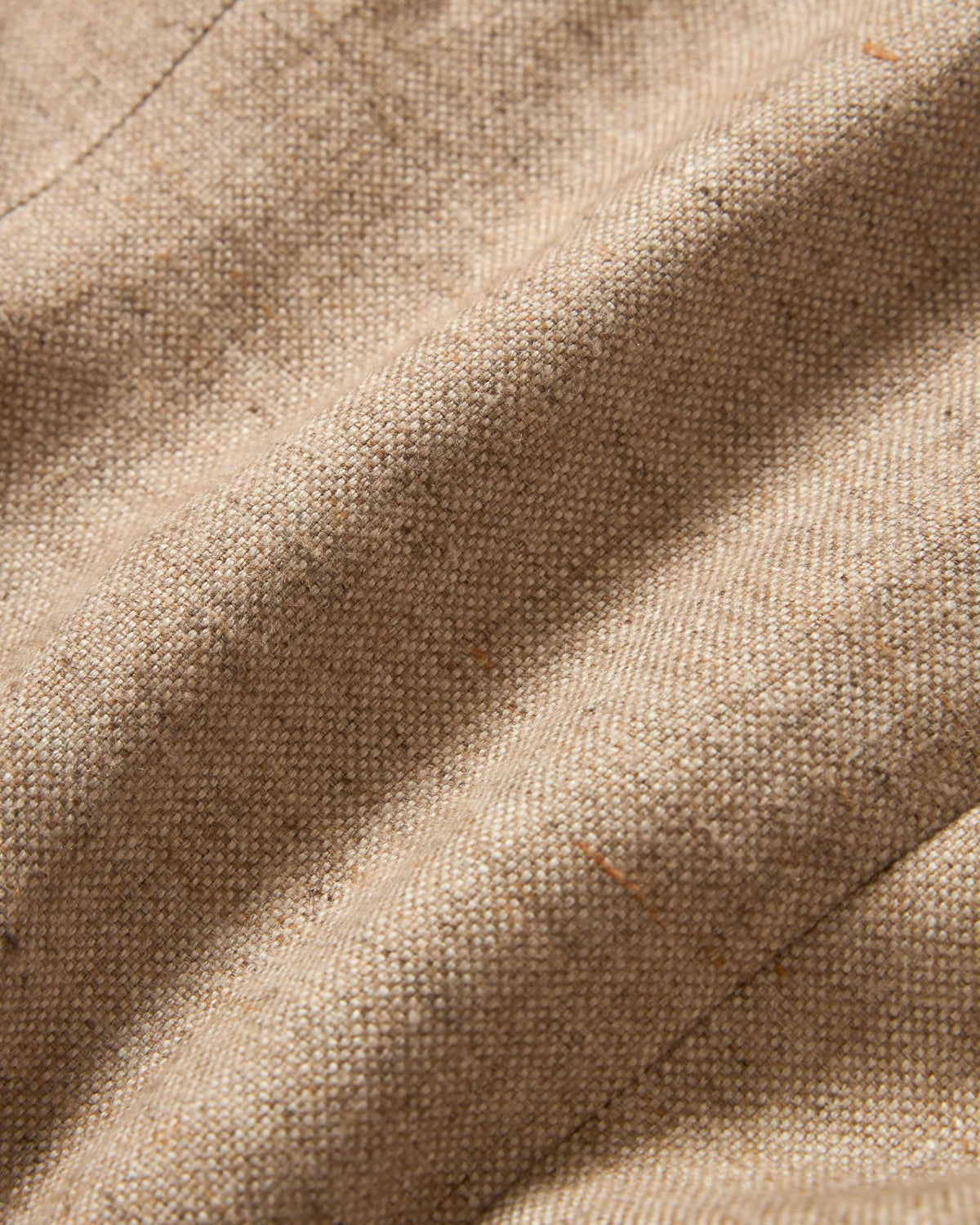 この生地はウールとリネンの混紡ですが、見た目以上に軽やかな着用感が特徴です。細番手の糸とオープンな織り構造により空気がスムーズに通り、リネンが強度とドライなタッチを加えています。通気性と耐久性に優れ、シーズンをまたいで長く着用するのに適しています。両素材ともに吸湿性が高く、快適な着心地を実現しています。