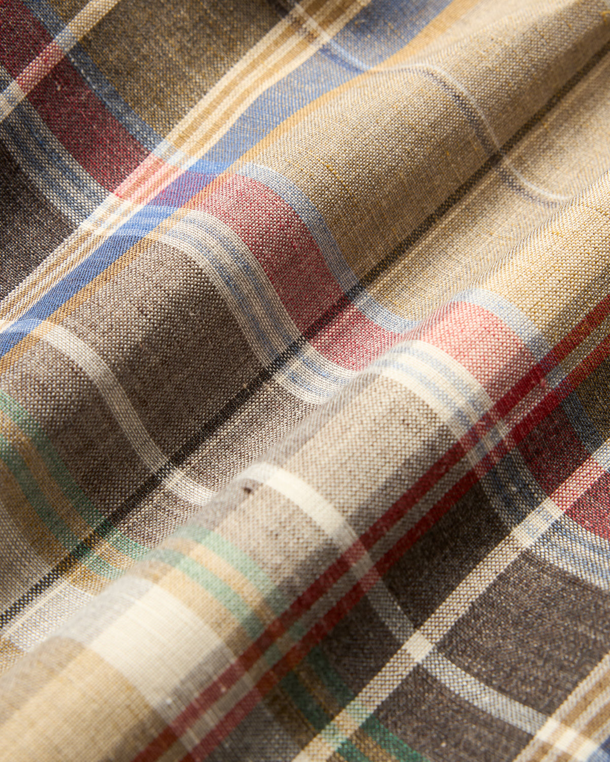 天然のスラブ感と豊かなテクスチャーがメランジのような奥行きを生み出し、表情に深みを与えています。オープンなバスケット織りにより、見た目にはしっかりとした存在感を持ちながらも、軽やかで通気性に優れ、さまざまな気温下でも快適に着用できます。上質なリネンと同様に、着込むほどにその魅力はさらに増していきます。